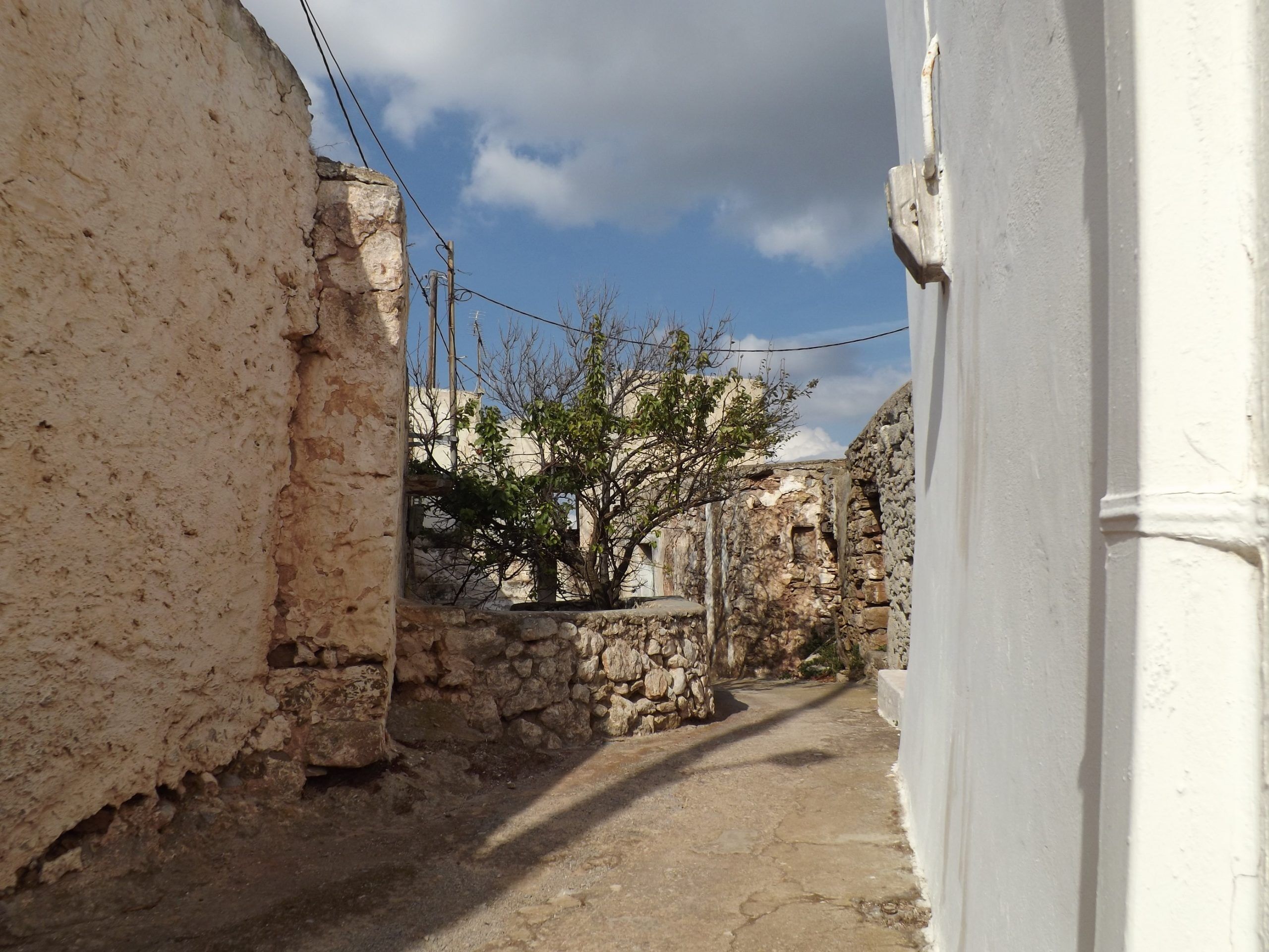 The medieval village of Voila is located on a steep hill in the eastern part of the Armenochantradon plateau. In character it is a fortified village with a row of small houses, two small chapels and a central, formerly two-story Venetian residential tower of the Zeno family from the 16th or 17th century. Typical features of a Venetian (fortified) building are the outer walls, which are up to 70cm thick at the base, the vaulted ceiling of the two individual rooms, the carefully crafted band of cordons in the transition to the first floor, the remains of a stone staircase, the carefully chiseled framing of the doors and the small windows, the corner stone frame of the tower and the parapet that probably has surrounded the roof.