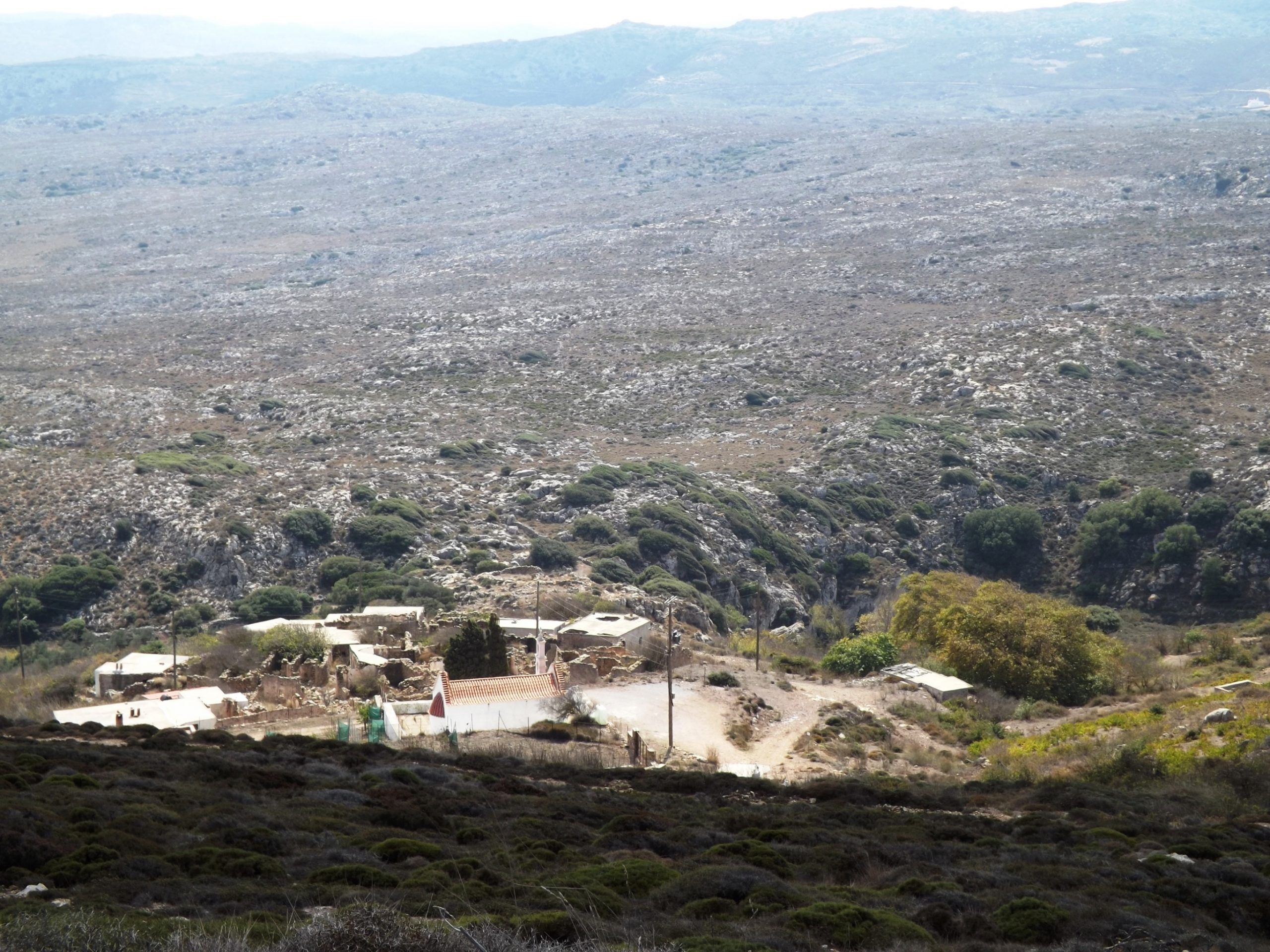 [2] Kato Zakros- Chandras- Ag. Spiridon– Sitia- Kato Zakros: This is a remote and low-traffic route on the western flank of the Sitia trench. From Sitanos via Chandras and Ag. Spiridon to the north coast and to Sitia. On a narrow, winding country road we go 31 Kilometers through the barren landscape with low shrub vegetation, individual pine trees and Kermes oaks, past olive groves, vineyards vegetable and fruit cultivation. Coming from the medieval hamlet of Voila, turn right at the playground on the northern outskirts of Chandras and continue, mostly downhill, via Ag. Spiridon and Piskokèfalo to Sitia [Ascent 530m; Descent 1,150m].