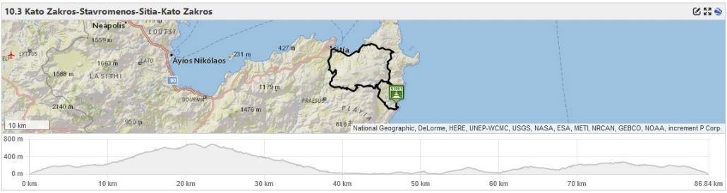 Option 1: Kato Zakros-Stavromenos-Sitia-Kato Zakros | 87 km | 2.248 vertical meters | Hors Catègorie